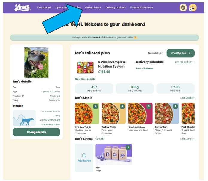 On a laptop or tablet select Purchase History from the links across the top of the page.