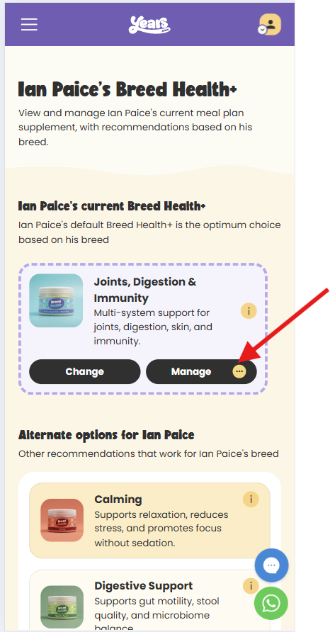 - 👆 Select Manage in the Breed Health+ section