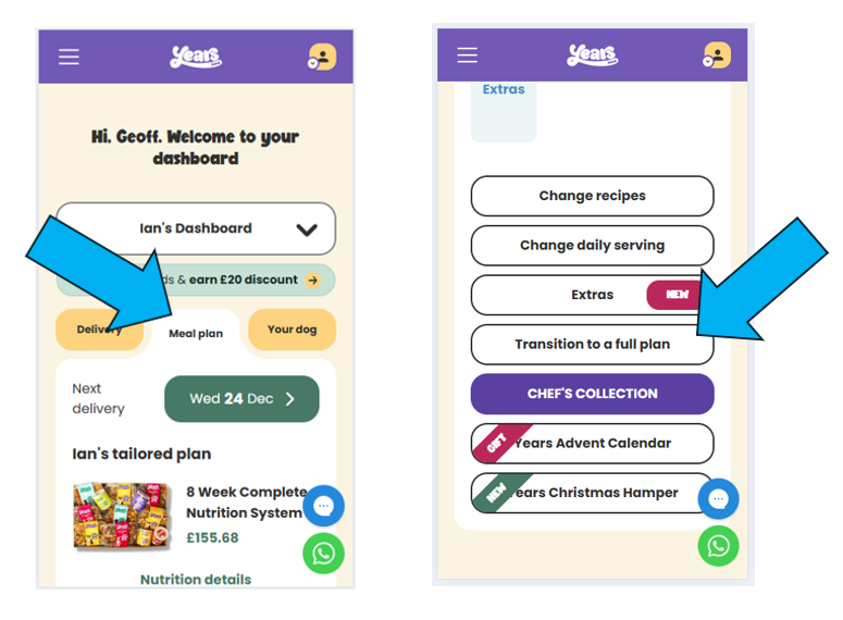 Switching from a Partial Feeding Plan to a Full 100%-Years plan is simple. Just follow the steps below based on your device: