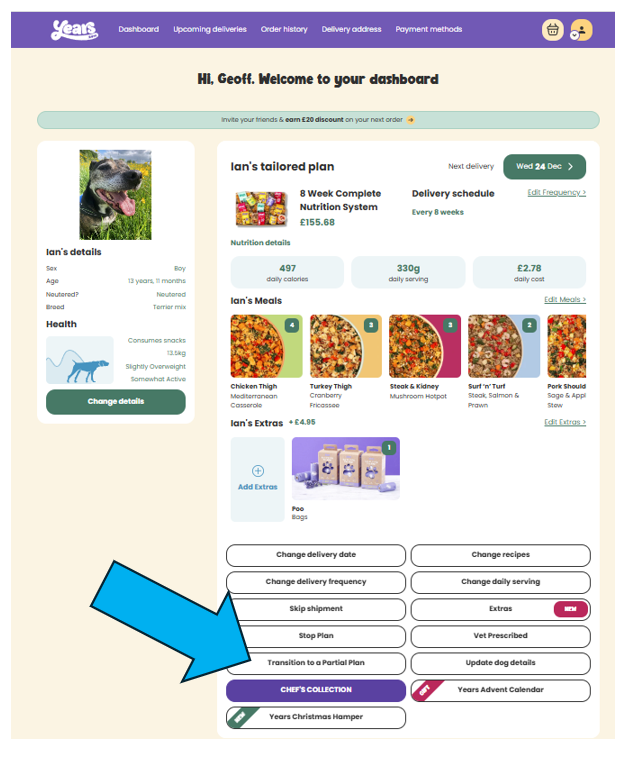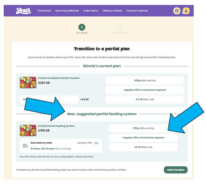 If you would prefer a different daily serving to the one that's suggested, you can manually choose a different one - it's best to change to a partial plan first, and only after you have completed it, then select the new serving.